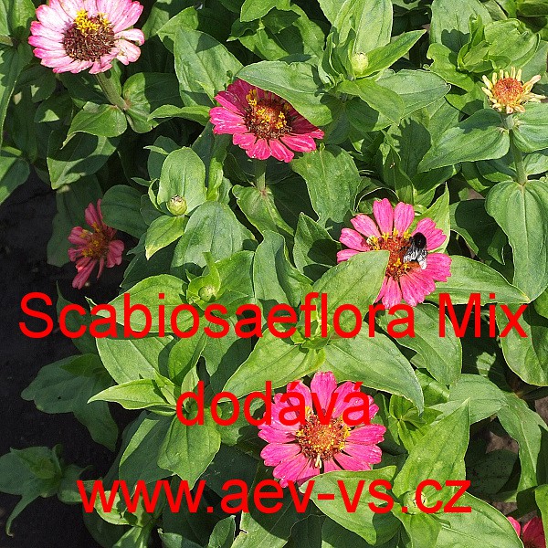 Ostálka sličná lepá, cínie (Zinnia elegans) Scabiosaeflora Mix je směs nižších skabiózokvětých jednoletých květin.